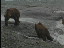 DX EXT 3 bears circle river, crawl on rocks, cu paws |