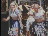 MAN IN DERBY WITH CIGAR DOES FUNNY DANCE, SHOWGIRLS WEARING FEATHERS DANCE, STRIPPER DOES FAN DANCE, CU SINGER WINKS, COUPLE DRINKS CHAMPAGNE, MAN AS PRISONER IN JAIL