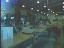 ITALIAN KIDS ENTER, EXIT BURGER JOINT. BURGHY HAMBURGERS. INTERIOR ITALIAN FAST FOOD RESTAURANT.
