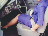 AFTERMATH OF CAR ACCIDENT, CU MAN TAKING APART WRECKED CAR, CAR WRECKAGE