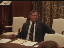 Two businessmen, a Black man and a white man, sit in a wood paneled office and talk. CU on the white man, with long dark sideburns.