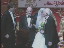 WS of the float in the circus ring. z'in to the bride and groom getting onto the float. CU bride and groom. A paster performs the wedding ceremony.