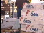 FULTON'S FULL OF FISH FULTON FISH MARKET, SOUTH STREET AND NASSAU ST, LOWER MANHATTAN -NYPD POLICE OFFICERS PATROL MARKET, FORKLIFTS AND MEN IN RUBBER BOOTS UNLOADING FISH -SIGN FOR SOUTH STREET SEAPORT -FISH ON A SCALES, LARGE BINS OF FRESH FISH, WOODEN CRATES, MAN TOSSES GUTTED FISH, CU OF FISH, PACKING UP STYROFOAM COOLERS OF FISH, MEN AT WORK, DIRTY JOBS |