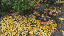 VARIOUS VIEWS SMALL POND IN MOUNTAINS, TOP OF WATER COVERED WITH FLLEN YELLOW LEAVES, AUTUMN FOLIAGE, TINY WATERFALL SPLASHING INTO POND