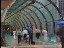 TL, MS, man (in your face) type of shot of fast moving people getting off fast moving crowded escalators. They look as if they will walk right to, two other shots of escalator going up in BG.