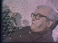 OLD MAN CONDUCTS DIALOGUE WITH SEVERE MAN ON MONITOR SCREEN. ON MONITOR VARIOUS ETHNIC REP-
