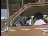DRUG SNIFFING DOG SNIFFS AT CARS PULLED AT BORDER CROSSING. HE JUMPS UP HIGH AND GETS EXCITED. GUARD PLACES DOG IN CAGE IN VAN.